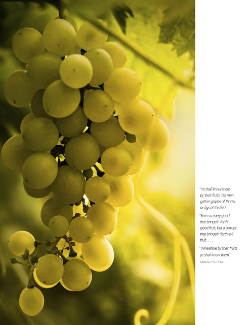 Been thinking a lot lately about the passage from Matthew chapter 7, about how "ye shall know them by their fruits". It's a phrase that's been coming around to me again and again. I guess it's just to remind me how to know what things are good and are worth pursuing and paying attention to. So I loved this picture inside the cover of the August Ensign, which quotes that passage. It's a beautiful reminder to seek after good things.